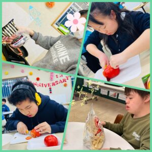 パン・スープチームは全員分のパンに切り込みを入れたりあったかぁいスープを火傷に注意しながら煮込みました(*゚ー゚*)