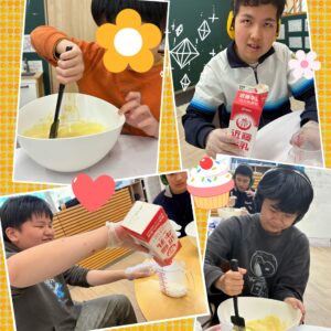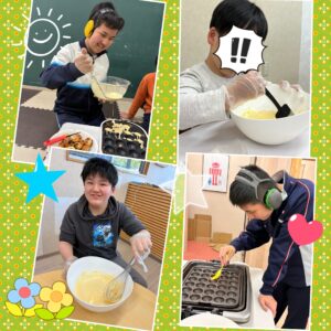 牛乳・たまご・ホットケーキミックスを使って生地を作り、みんなで協力して焼きました。