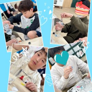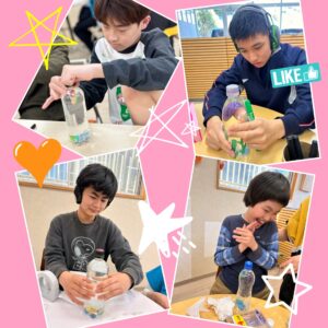 ペットボトルを押すと沈み、離すと浮かぶ不思議な動きに「なんで!?」「すごい!」と興味津々の様子でした♪