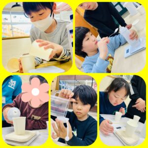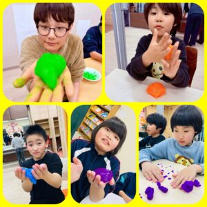今日の1階の活動は「蓄光スライム」作りに挑戦しました!