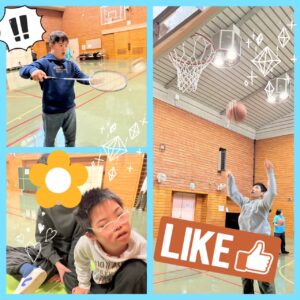 体育館で体を動かします!!