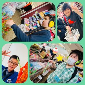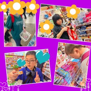 お店では好きなお菓子を選びつつスタッフと一緒に金額が超えないかしっかり計算していました😊