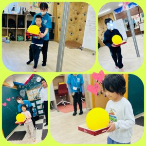 「割れないように優しく…でも急いで!」というスリルに、みんなのドキドキも最高潮。さらに後半は風船を2つに増やしました!😲