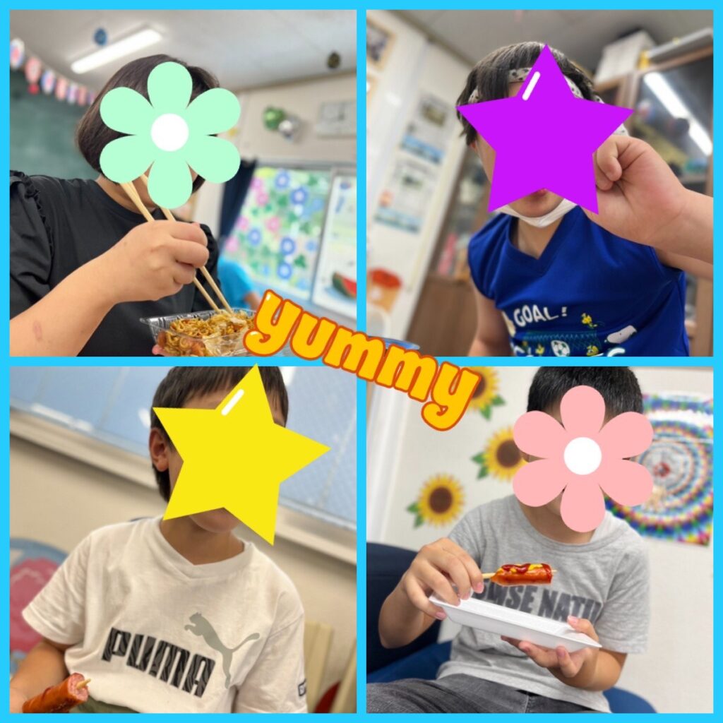 午後からは、待ちに待った夏祭り♪子どもたちは夏祭りで使う紙幣COCOに返金をして自分だけのお財布を持ち、ワクワクとした表情を見せながら、「なに食べようかな?」「どれがあるかな??」とココノワの中を見て回っていました(‘ω’)子どもたちは各々焼きそばを食べたり、射的で遊んだりと夏祭りを満喫している様子が見られました( *´艸`)また、今日はお家の人と一緒に参加してくれる子もおり、お家の人も一緒になってココノワの夏祭りを楽しんでいただけている様子でした(#^.^#)