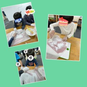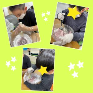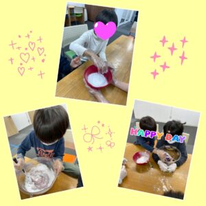 次に、粉糖を少しずつ加えながらゴムベラでまぜて、その後手でこねます!