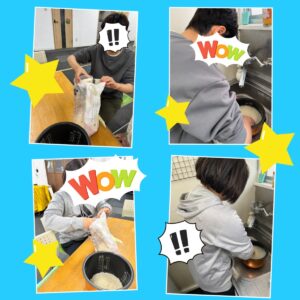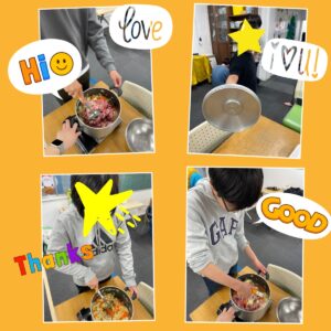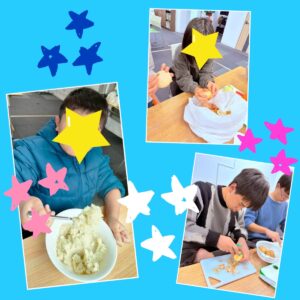 調理では、切る・混ぜるなどの工程に意欲的に取り組み、最後まで楽しんで参加していました。