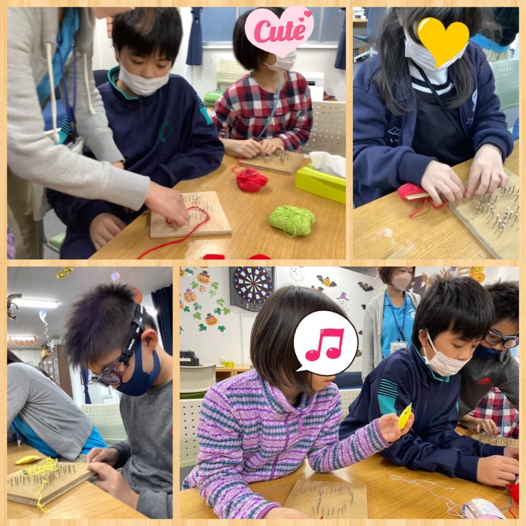 みんな集中して1つ1つ糸をしっかり釘に巻きつけていきました(^ ^)