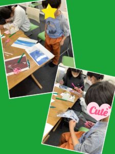 次は絵を描いたシートの周りをハサミで切り取ります!