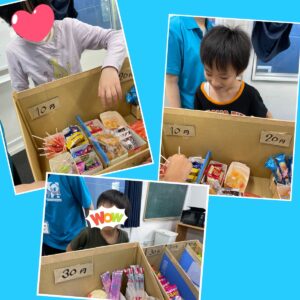 お店役のお友達は、お釣りを計算して正しく渡せたかな?