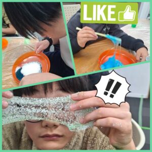 今日はスライム作りをして感触遊びを楽しみます!