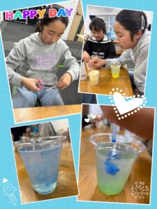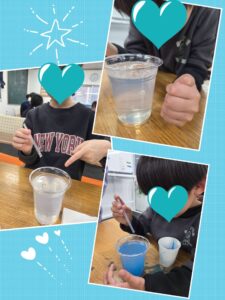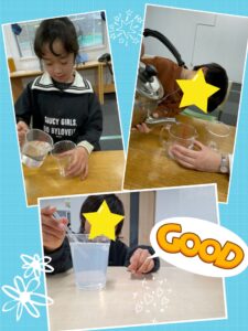 「次はどうなるかな」と期待をふくらませ、泡が広がる様子を夢中になって楽しむ姿が見られました。水中に丸い泡がふわっと広がると、「きれい」「もう一回やる」と大喜びし、何度も繰り返しながら水の動きや泡の変化を楽しんでいました。