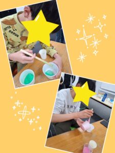🌟ホウ砂液と洗濯のりを混ぜて、液体を変化させてみよう🌟
