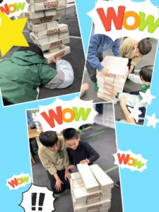 崩れてしまったときも笑顔で「もう一回やる!」と前向きに取り組み、楽しみながら遊ぶことができました。