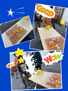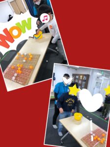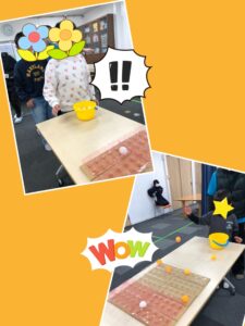 テーブルの端から1個ずつピンポン玉をバウンドさせ、穴に入れるというゲームなのですが!!!