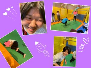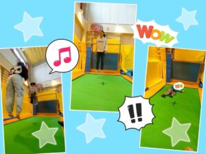 普通の床とは違う、ふわふわ・ポヨンとした感触に大興奮。