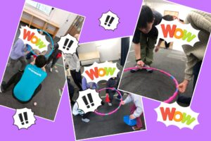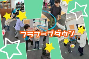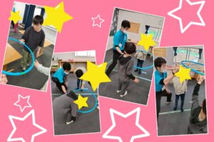 複数人で輪になり、それぞれ指1本を差し出してそこにフープを乗せます! 今日はただ上下させるだけではなく、障害物競走やお宝集めに挑戦してもらいました✨✨ 他者の動きを観察したり、「止まって!」「せーの」等の声掛けを行いながら、協調性アップできたかな(*^^*)? 今日も一日お疲れさまでした🌟 ![]() Processed with MOLDIV ![]() Processed with MOLDIV ![]() Processed with MOLDIV ![]() Processed with MOLDIV ![]() Processed with MOLDIV ![]() Processed with MOLDIV |