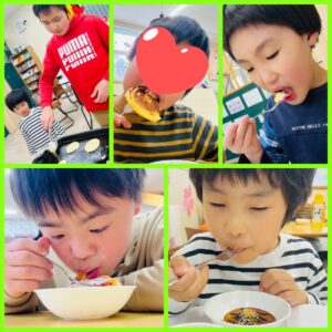 ホットプレートで焼いていると、良い香りがしてきて、みんなお腹ペコペコになりました。
