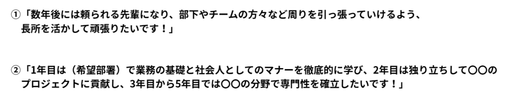 見ての通り、②の具体的な期間と行動目標をもって話せる学生さんは、非常に好印象だと思いませんか??